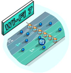 Wi-Fi 7では、新たに320MHzの広帯域チャネルに対応し、より高速で安定した大容量データ通信を実現します。